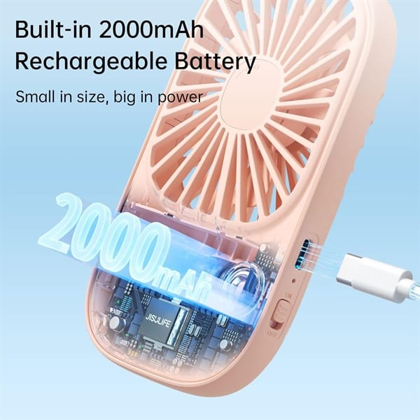 Quạt cầm tay mini JISULIFE được trang bị pin sạc lại, giúp bạn tiết kiệm thời gian và tiền bạc từ việc thay pin liên tục. Bạn chỉ cần sạc pin qua cổng USB và quạt sẽ sẵn sàng sử dụng trong thời gian ngắn. Thời lượng pin lâu dài cũng là một ưu điểm của quạt này. Bạn có thể sử dụng quạt trong thời gian dài mà không cần lo lắng về việc hết pin. Điều này rất hữu ích khi bạn đang ở nơi không có nguồn điện, như khi đi cắm trại hoặc tham gia các hoạt động ngoài trời.